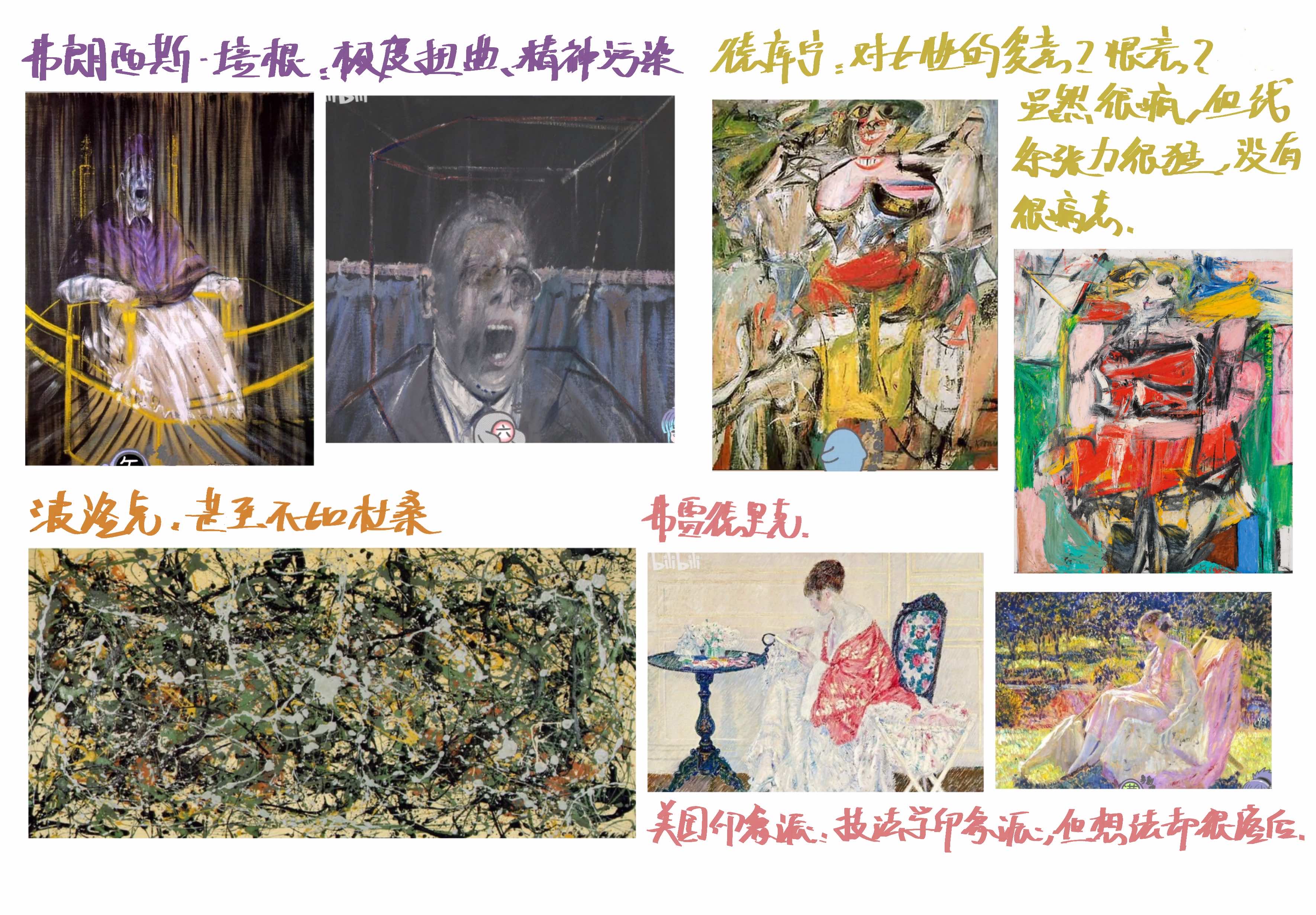 夏尔丹(Jean-Baptiste-Siméon Chardin)弗朗西斯·培根(Francis Bacon)、德·库宁(Willem de Kooning)、波洛克(Jackson Pollock)、美国印象派